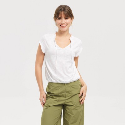 Women's Cap Sleeve Ruffled V-Neck Tie Top - Universal Thread™