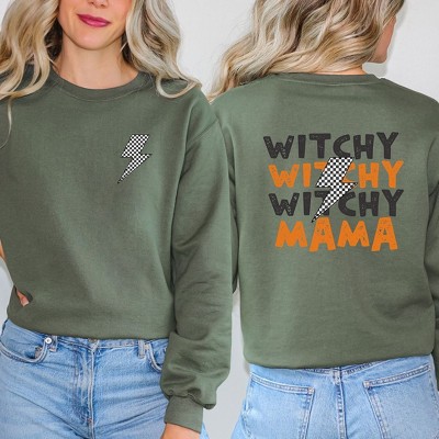 Simply Sage Market Women's Graphic Sweatshirt Witchy Mama Lightning Bolt Front and Back