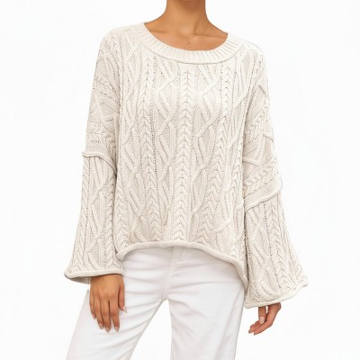 Anna-Kaci Women's Cable Knit Pullover Sweater with Relaxed Fit and Wide Cuff Sleeves
