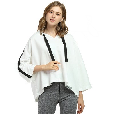 Women's Postcard Whipstitch Graphic Hooded Pullover Sweatshirt - Off-White