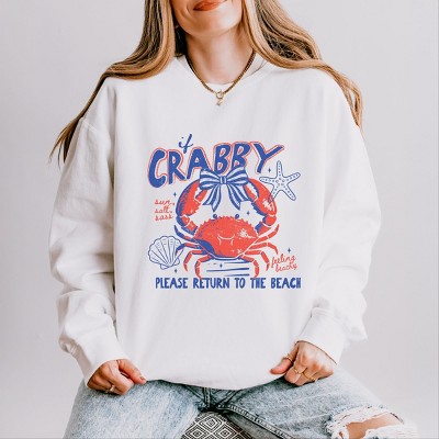 If Crabby Please Return To The Beach Grunge - Women's Lightweight Garment Dyed Sweatshirt