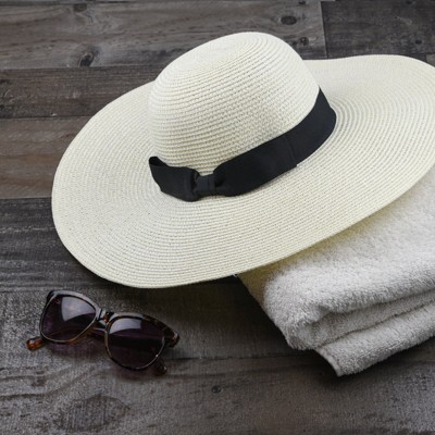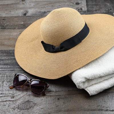Anna-Kaci Womens Straw Boater Hat Wide Brim Summer Beach Hat Woven Band Flat Top Sun Hat