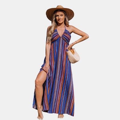 Women's Vibrant Striped Halter Maxi Beach Dress - Cupshe