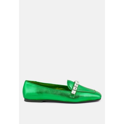 Churros Green Metallic Diamante Leather Loafers