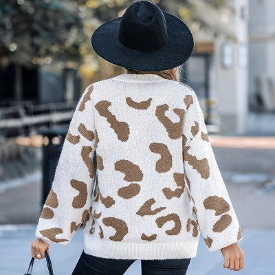 Women's Leopard Print Drop Sleeve Sweater - Cupshe