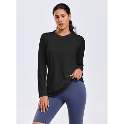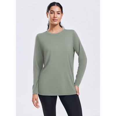 Pinspark Workout Tops for Women Long Sleeve Yoga Shirts Crew Neck Athletic Top Loose Fit for Running Gym Hiking