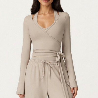Anna-Kaci Active Women's Long Sleeve Wrap Hoodie with V-Neck and Side Drawstring Details for Everyday Wear