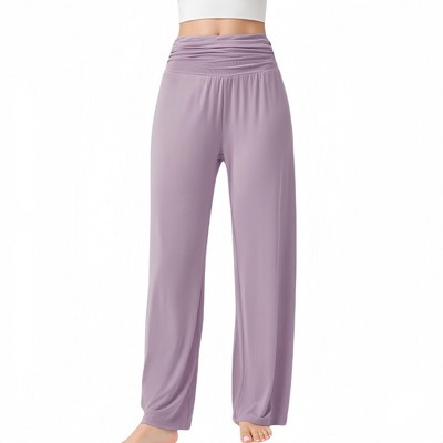 Anna-Kaci Active Women's Wide Leg Lounge Pants with Fold Over Waistband and Adjustable Drawstring Hem