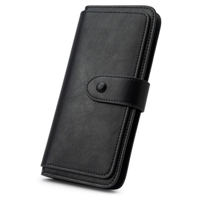 RFID Blocking Leather Wallet for Women, Slim Trifold with 14 Card Slots and Zipper Pocket