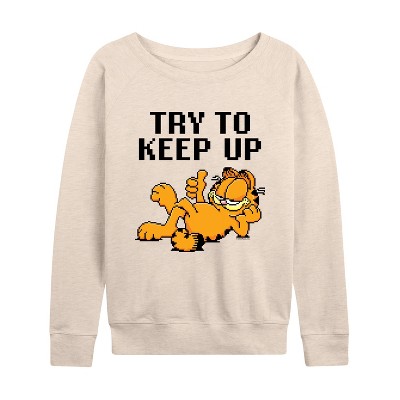 Women's - Garfield - Try To Keep Up Lightweight French Terry Wide Neck Long Sleeve Graphic Shirt