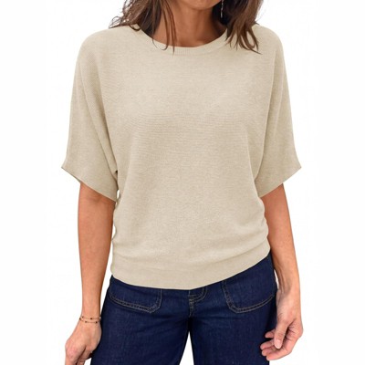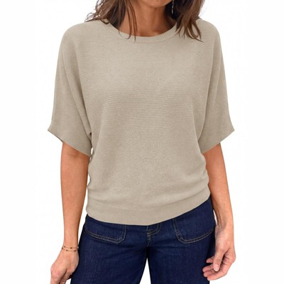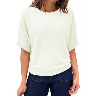 Imily Bela Womens Batwing Sleeve Boat Neck Summer Knit Top Lightweight Loose Fit