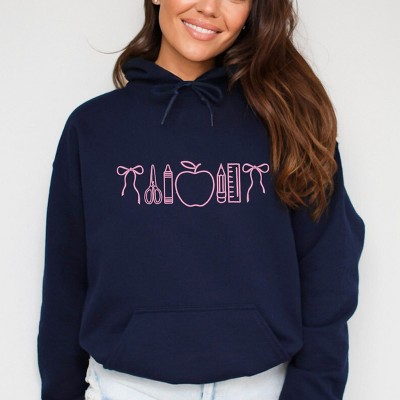 Embroidered Bows School Icons - Women's Graphic Hoodie
