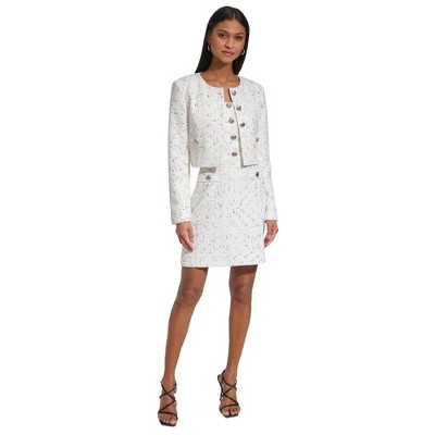 Karl Lagerfeld Womens Metallic Tweed Blazer Jacket