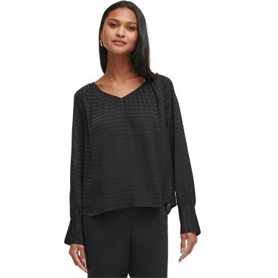 Calvin Klein Womens Textured Peasant Blouse