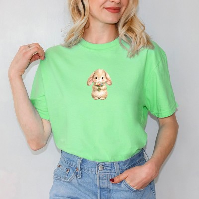 Easter Bunny Watercolor - Women's Garment Dyed Graphic T-Shirt