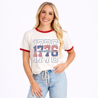 1776 America Stacked - Women's Ringer Graphic T-Shirt