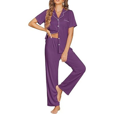 Ekouaer Womens Pajama Sets Button Down Pjs 2 Piece Short Sleeve Sleepwear with Pants Soft Loungewear