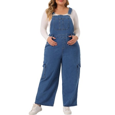 Agnes Orinda Women's Plus Size Denim Bib Jeans Pockets Stretch Adjustable Suspenders Jumpsuit