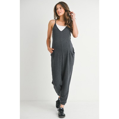 Hello Miz Women's Casual V Neck Adjustable Straps Maternity Jogger Jumpsuit with Pockets