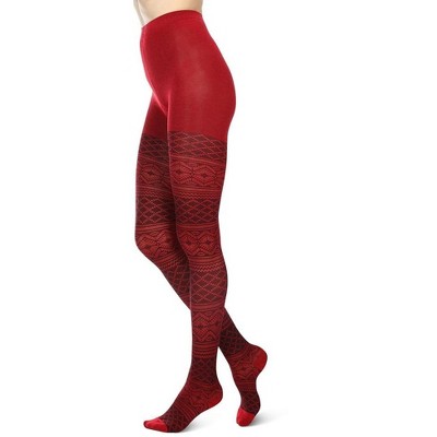 Memoi Traditional Geometric Lifestyle Sweater Tights Red M-L