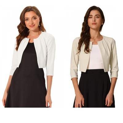 INSPIRE CHIC Women's 3/4 Sleeve Collarless Pleated Open Front Cropped Cardigan 2 Packs