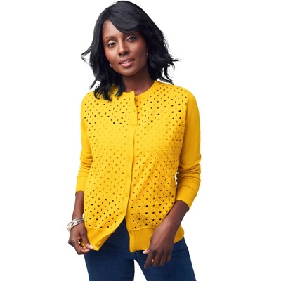 Woman Within Embroidered Shaker Cardigan Sweater
