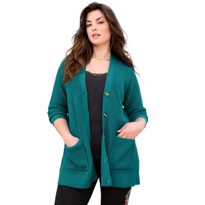 Roaman's Long Knit Shimmer Cardigan Sweater