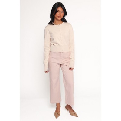 Anna-Kaci Women's Soft Knit Button Front Cropped Cardigan with Ribbed Trim Details and Relaxed Long Sleeves