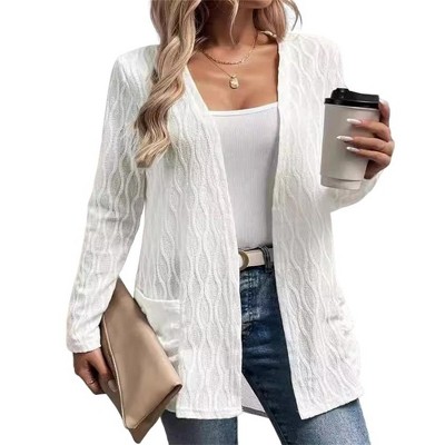 Womens Cardigan Solid Color Cable Knit Long Sleeve Open Front Cardigan Sweater Top