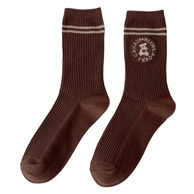 Memoi Women's Daisy Squared Crew Socks Black 9-11