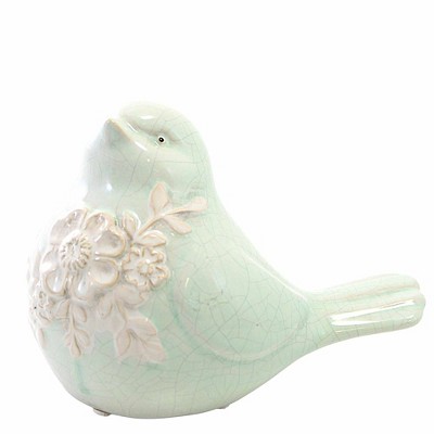 Ganz 5.0 Inch Bird With Flowers Spring Figurine , Crackled Finish Speckled (1PC)