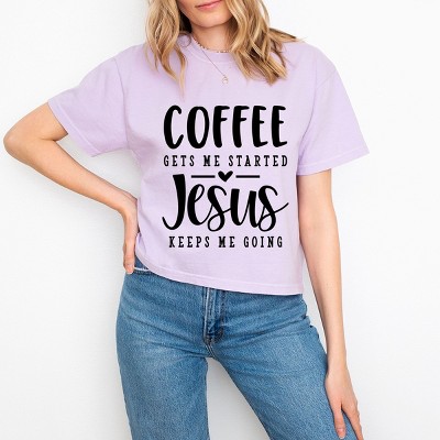 Coffee Gets Me Started - Women's Boxy Crop Top Graphic T-Shirt