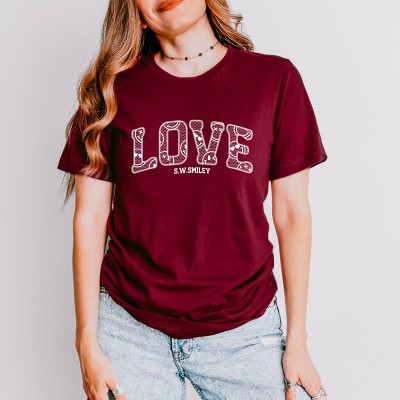 S.W.Smiley Love Faux Lace - Women's Short Sleeve Graphic T-Shirt
