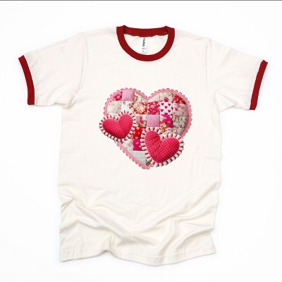 Hearts Patchwork Print - Women's Ringer Graphic T-Shirt