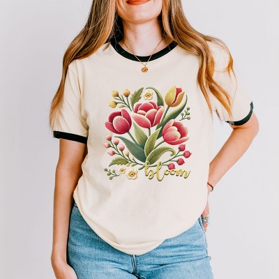 Bloom Tulips Faux Texture - Women's Ringer Graphic T-Shirt