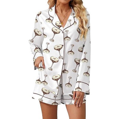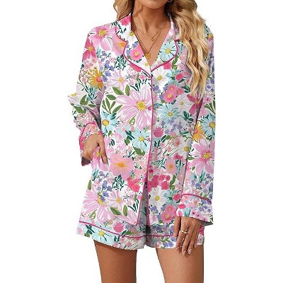 SHESHOW Womens Pajama Sets Silky Funny Pajamas Long Sleeve Top and Shorts 2 Piece Pj Sets Soft Sleepwear for Women