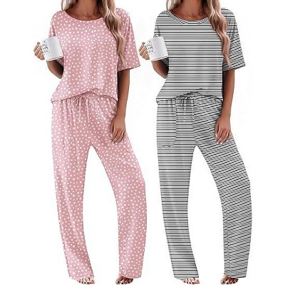Ekouaer 2 Pack Womens Pajama Sets Short Sleeve with Long Pajama Pant Set Soft Sleepwear Printed Pj Lounge Sets with Pockets