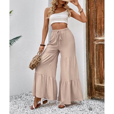 Anna-Kaci Women's Wide Leg Cropped Pants with Elastic Waist and Eyelet Hem