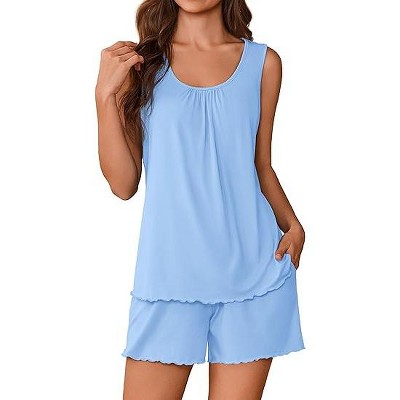 Ekouaer Womens Pajama Sets Viscose from Bamboo Sleeveless Lounge Sets Soft Tank Top and Shorts 2 Piece Pj Sets with Pockets