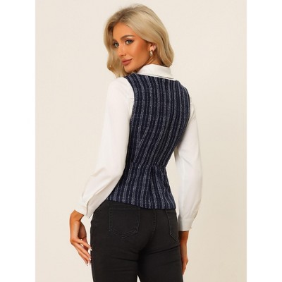 Women's Waistcoat Button Vintage Vest Regular Fitted Fashion Dressy Suit with Pockets