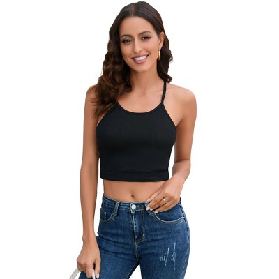 BLUEMING Womens Cropped Cami Rib Knitted Spaghetti Strap Tops Sleeveles Tops Summer Tank Tops,black - XL