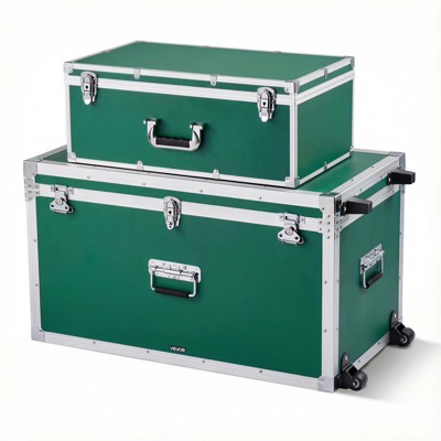 VEVOR Metal Storage Trunk, Set of 2, Wooden Suitcase Storage Boxes with Padlocks, Large Trunk Includes Casters & 3 Metal Handles,Lids for Travel,Green