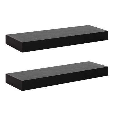 18.11" Black Floating Shelf ¨C invisible-bracket wood wall mount, perfect bathroom/bedroom/kitchen d¨¦cor or book/plant display, easy install.