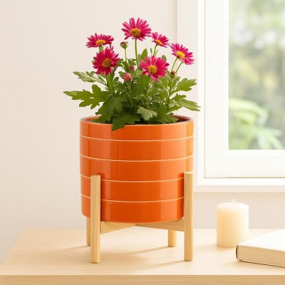 - round wooden planter
