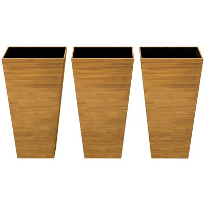 Outsunny 28" Tall Outdoor Planters, Set of 3 Large Taper Planters with Drainage Holes and Plug, Faux Wood Plastic Flower Pots