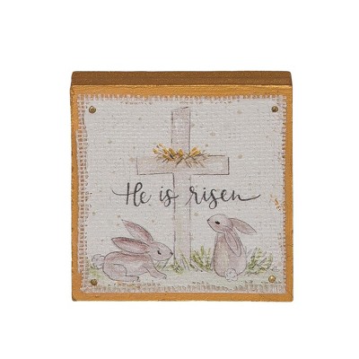 Transpac Handpainted Wood Fabric Cross with 2 Bunnies Easter Home Decorations Decorative Objects
