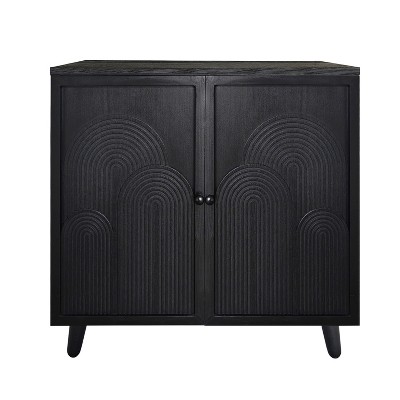 Okak Accent Storage Cabinet with Floral Hand-Carved and Wooden 2-Door, Entryway Cabinet for Living Room, Kitchen, Brown