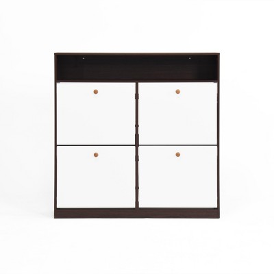 Gulches 4 Flip Drawer Shoe Storage Cabinet, Brown Freestanding Shoe Rack with Wooden Handle & Anti-Tip Fitting for Entryway, Hallway