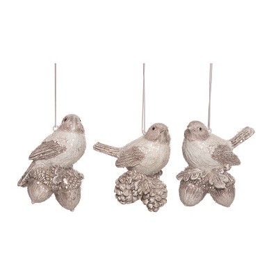 Transpac Set of 3 Resin Glitter Winter Bird Ornaments Christmas Tree Decorations for Home Holiday Decor