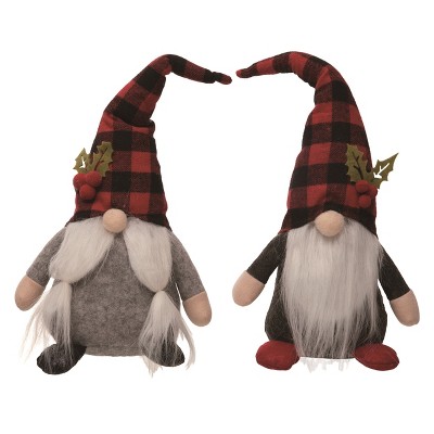 Transpac Christmas Plush Plaid Sitting Gnome Set of 2 Christmas Home Decorations